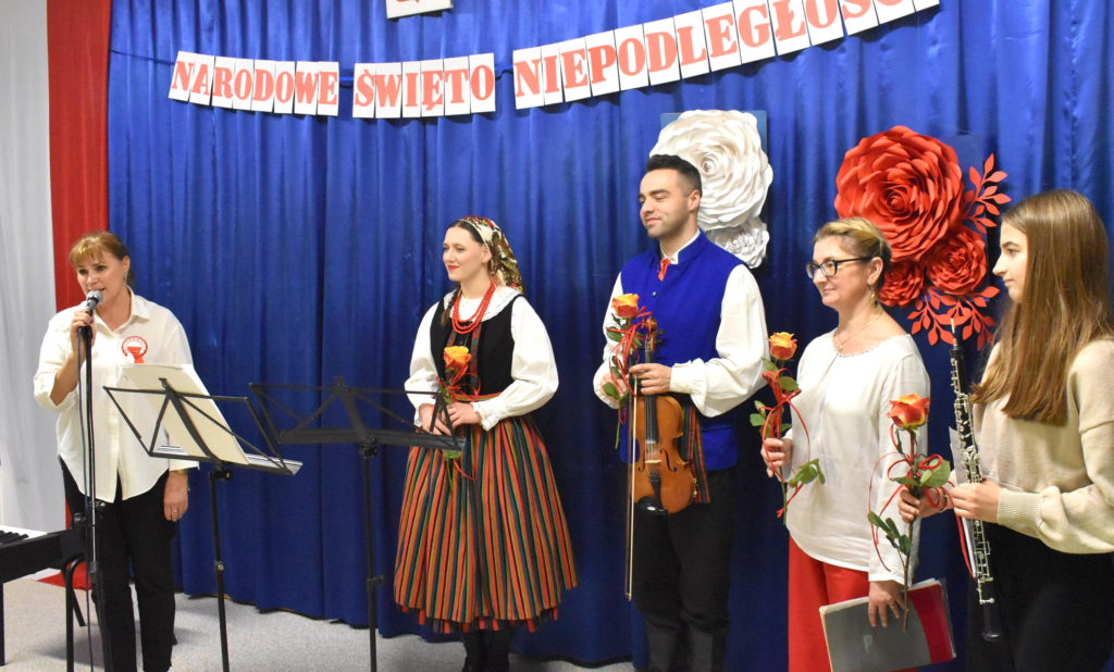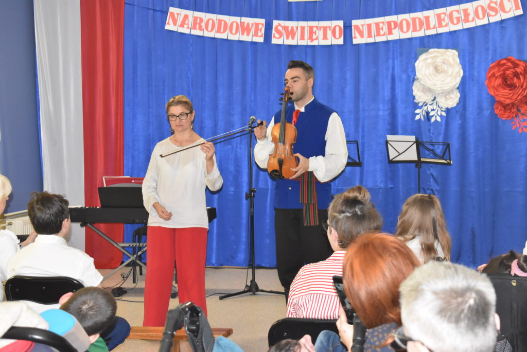 Dekoracja w barwach narodowych oraz wystawa prac plastycznych uczniów pod hasłem „A TO POLSKA WŁAŚNIE” wprowadziły wszystkich w patriotyczny nastrój i podkreśliły dostojność tego święta. Finałowym akordem uroczystości była wspaniała audycja umuzykalniająca dla uczniów w wykonaniu muzyków Filharmonii Częstochowskiej, pt. „POLSKA JEDENASTKA – polska muzyka i poezja.” Serdecznie dziękujemy!